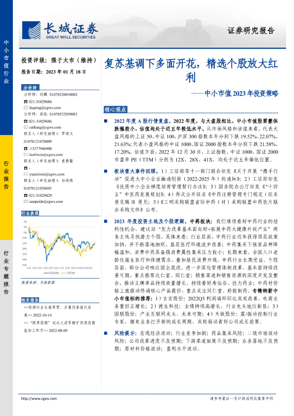 【长城证券】【20230118】中小市值2023年投资策略:复苏基调下多面开花,精选个股放大红利-21页