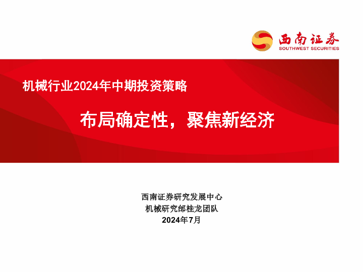 【西南证券】【202407】机械行业2024年中期投资策略:布局确定性,聚焦新经济-112页