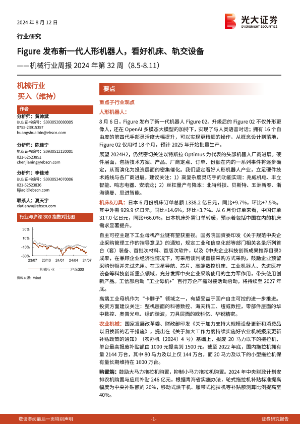 【光大证券】【20240812】2024年第32周机械行业周报:Figure发布新一代人形机器人,看好机床、轨交设备-12页
