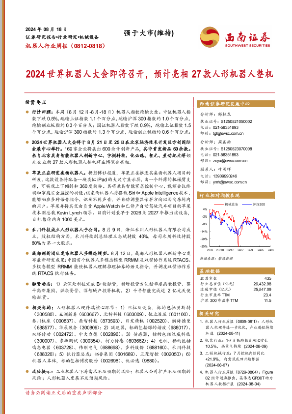 【西南证券】【20240818】2024世界机器人大会即将召开,预计亮相27款人形机器人整机-10页