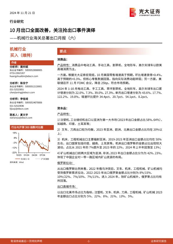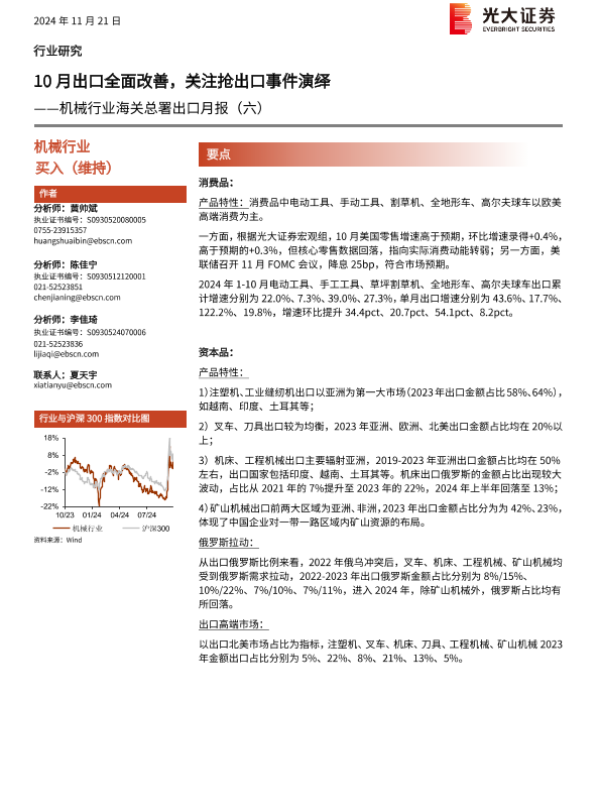 【光大证券】【20241121】机械行业海关总署出口月报(六):10月出口全面改善,关注抢出口事件演绎-17页