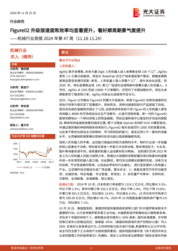 【光大证券】【20241125】2024年第47周机械行业周报:Figure02升级版速度和效率均显著提升,看好顺周期景气度提升-12页