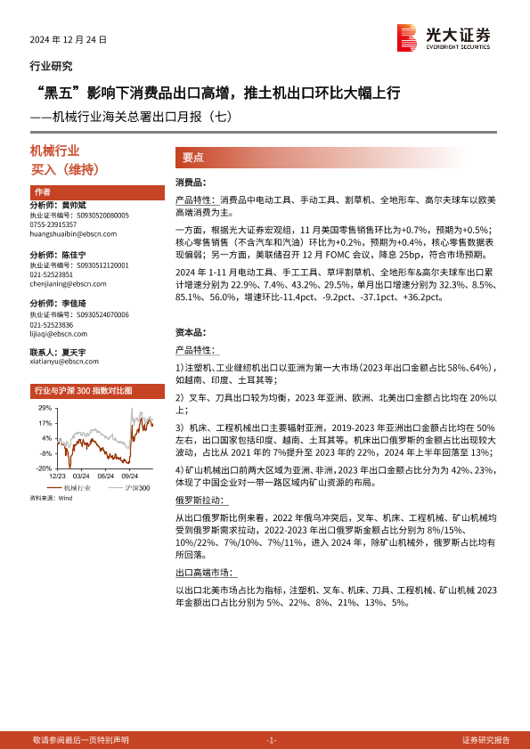 【光大证券】【20241224】机械行业海关总署出口月报(七):“黑五”影响下消费品出口高增,推土机出口环比大幅上行-17页
