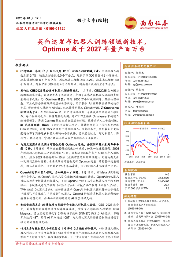 【西南证券】【20250112】机器人行业周报:英伟达发布机器人训练领域新技术,Optimus或于2027年量产百万台-13页
