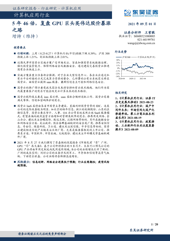 【东吴证券】【20210901】计算机应用行业:5年46倍,复盘GPU巨头英伟达股价暴涨之路-20页