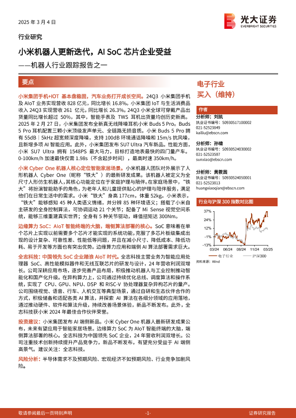 【光大证券】【20250304】机器人行业跟踪报告之一:小米机器人更新迭代,AI SoC芯片企业受益-20页