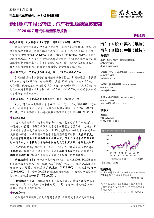 【光大证券】【20200812】2020年7月汽车销量跟踪报告:新能源汽车同比转正,汽车行业延续复苏态势-17页