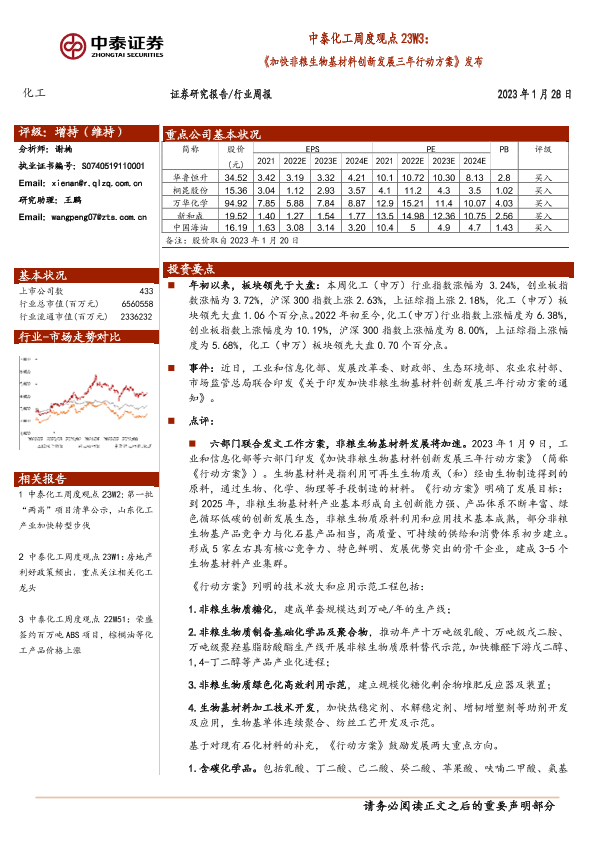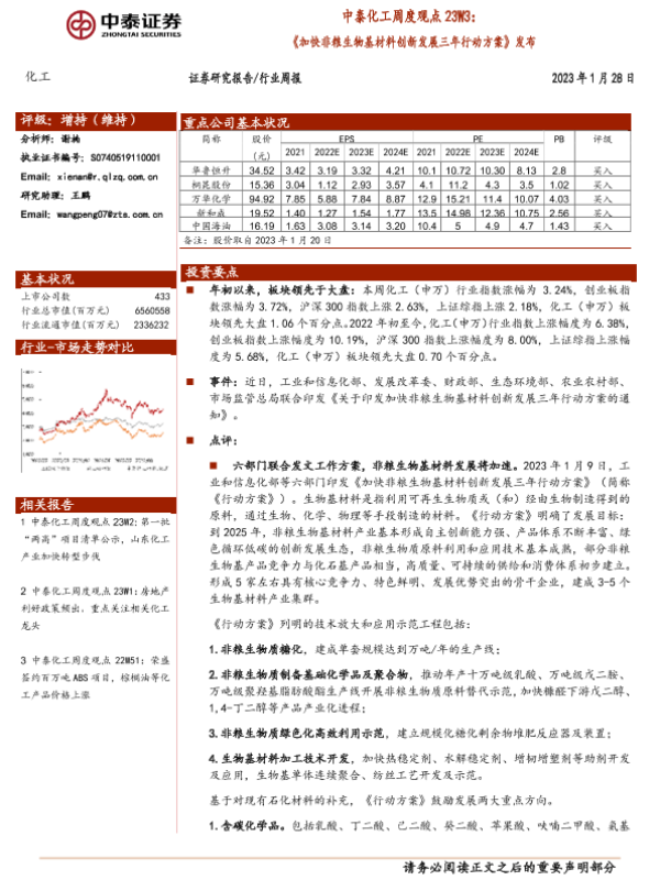 【中泰证券】【20230128】中泰化工周度观点23W3:《加快非粮生物基材料创新发展三年行动方案》发布-37页