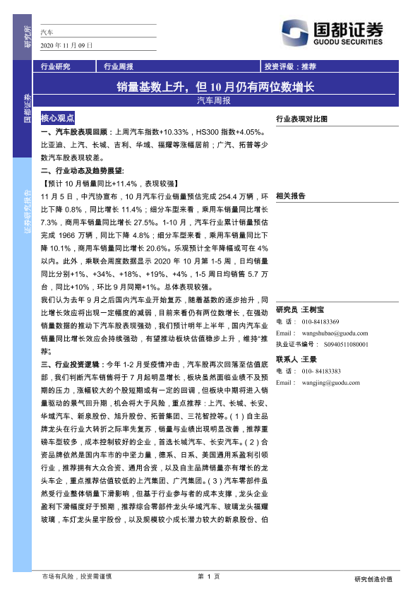 【国都证券】【20201109】汽车周报:销量基数上升,但10月仍有两位数增长-3页