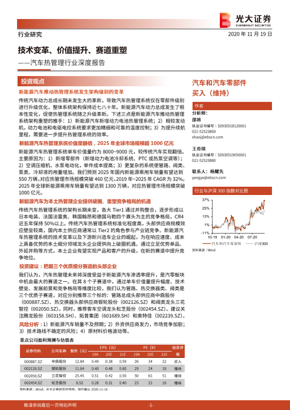 市场竞争 技术变革 新能源汽车 热管理系统 投资建议