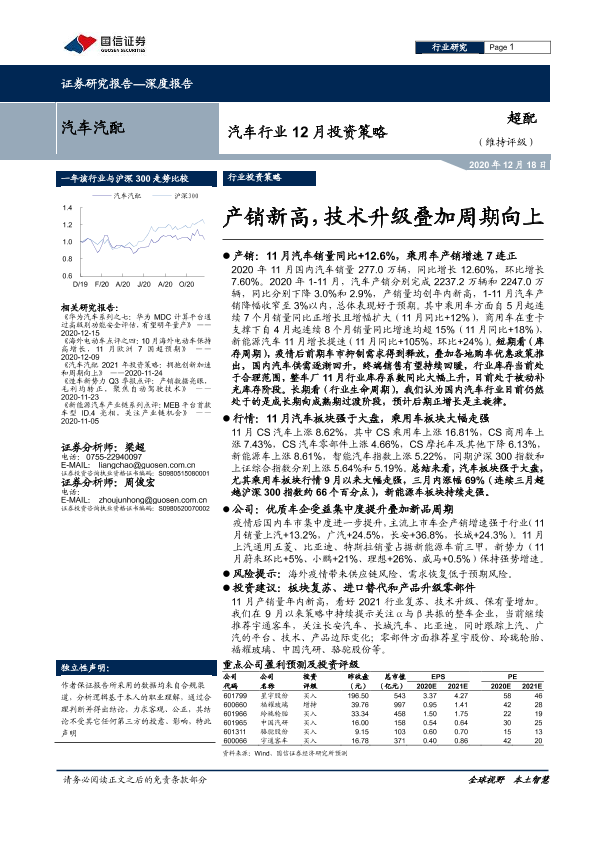 【国信证券】【20201218】汽车行业12月投资策略:产销新高,技术升级叠加周期向上-34页