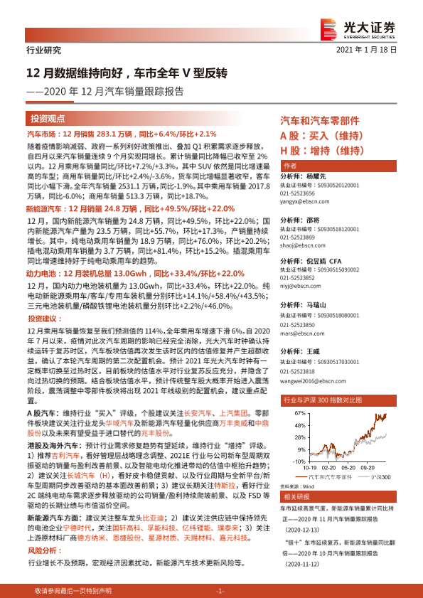 【光大证券】【20210118】2020年12月汽车销量跟踪报告:12月数据维持向好,车市全年V型反转-15页