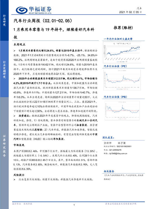 【华福证券】【20210205】20210205-华福证券-汽车行业周报:1月乘用车零售与19年持平,继续看好汽车科技-7页