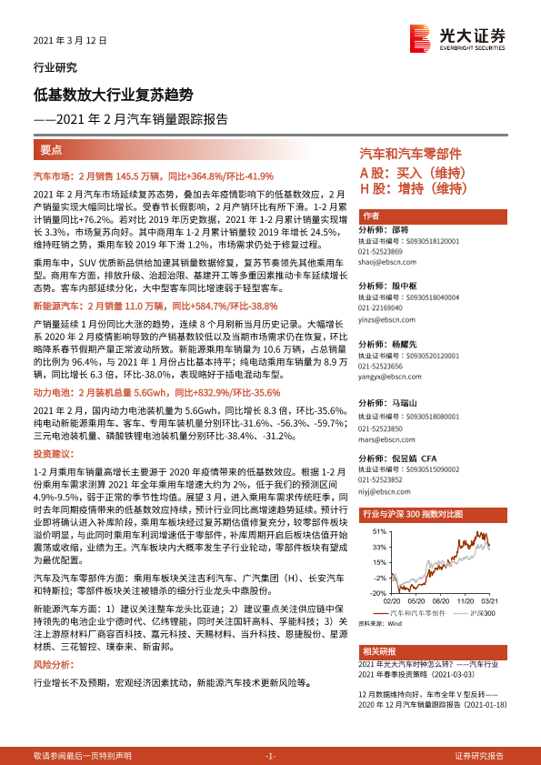 【光大证券】【20210312】2021年2月汽车销量跟踪报告:低基数放大行业复苏趋势-16页