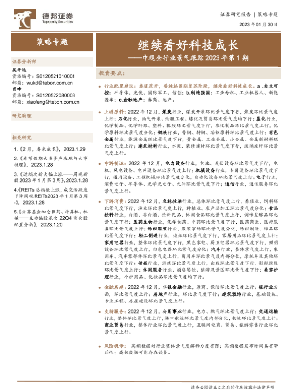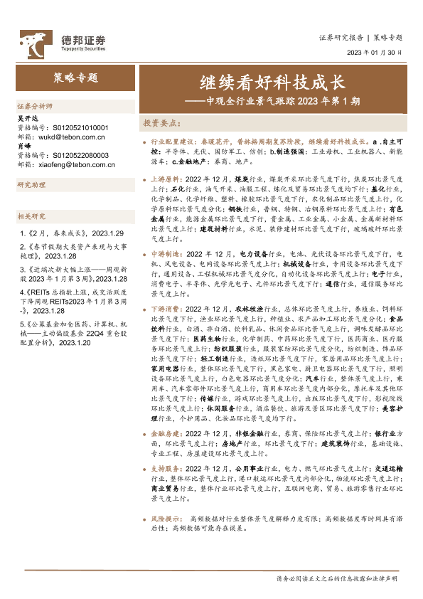 【德邦证券】【20230130】中观全行业景气跟踪2023年第1期:继续看好科技成长-54页