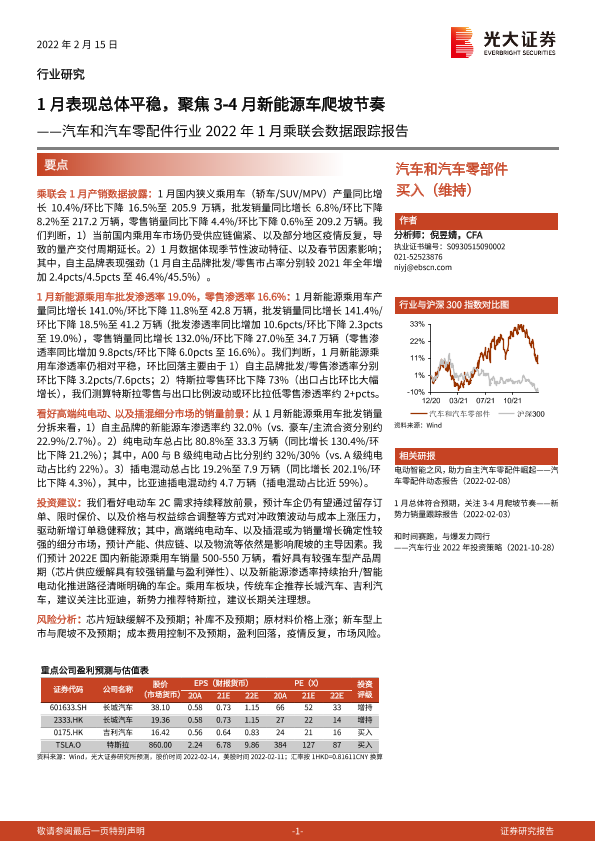 【光大证券】【20220215】汽车和汽车零配件行业2022年1月乘联会数据跟踪报告:1月表现总体平稳,聚焦3-4月新能源车爬坡节奏-2页