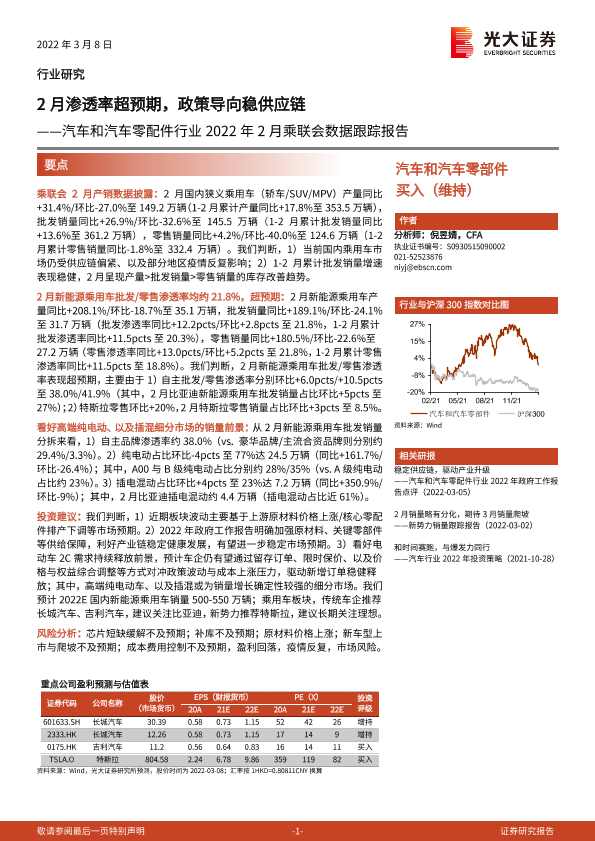 【光大证券】【20220308】汽车和汽车零配件行业2022年2月乘联会数据跟踪报告:2月渗透率超预期,政策导向稳供应链-2页