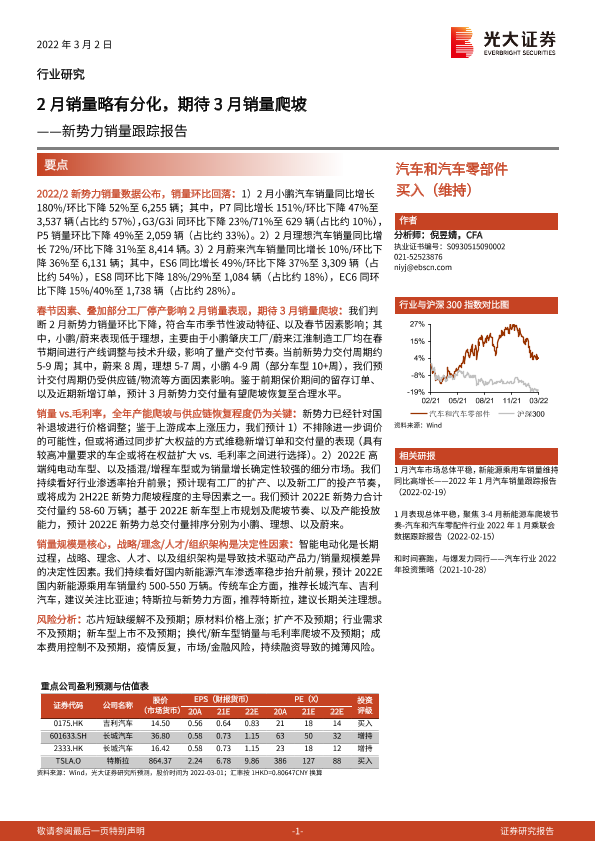 【光大证券】【20220302】2月销量略有分化,期待3月销量爬坡——新势力销量跟踪报告-3页