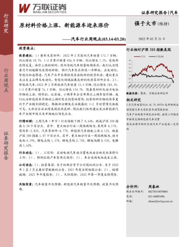 【万联证券】【20220321】原材料价格上涨,新能源车迎来涨价-11页