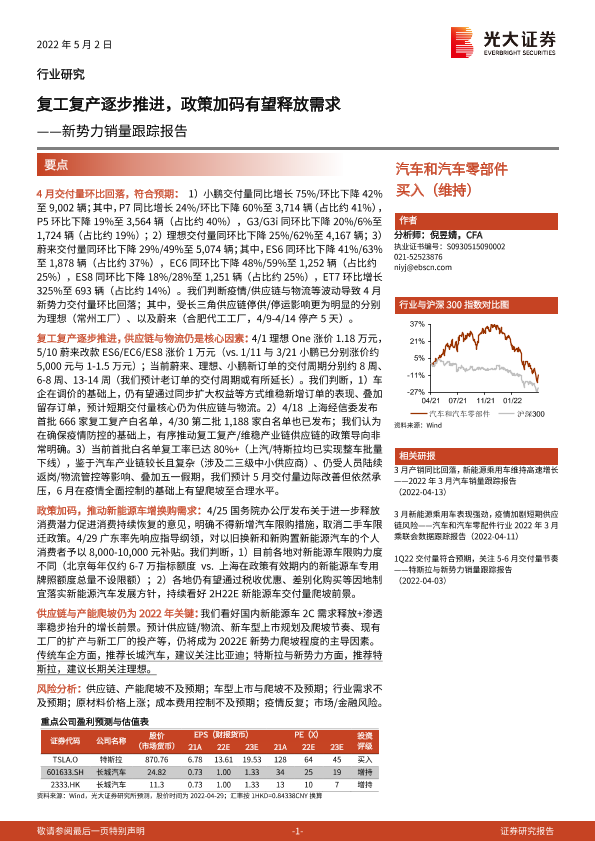 【光大证券】【20220502】新势力销量跟踪报告:复工复产逐步推进,政策加码有望释放需求-2页