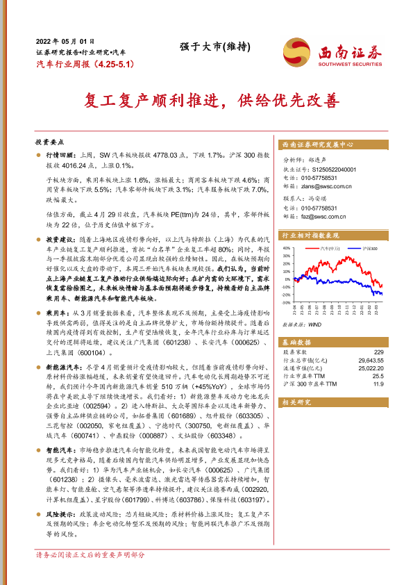 【西南证券】【20220501】汽车行业周报:复工复产顺利推进,供给优先改善-14页