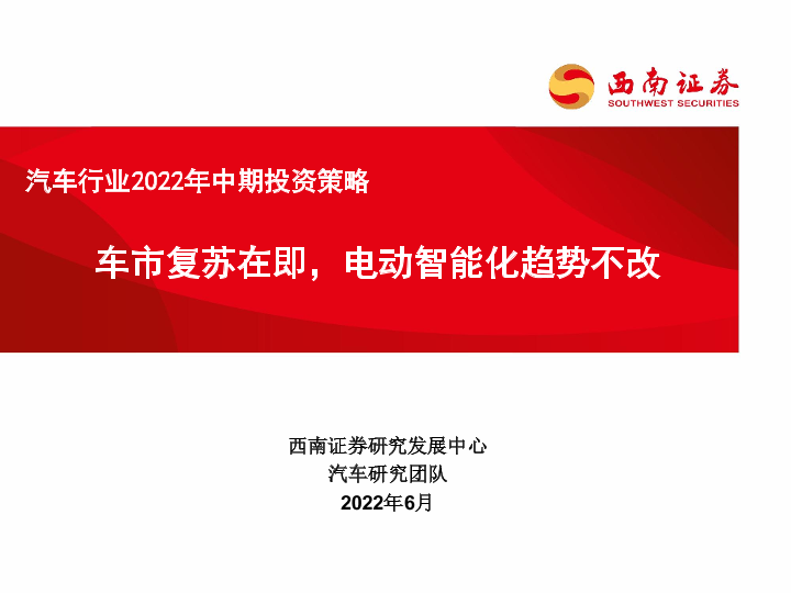 【西南证券】【202206】汽车行业2022年中期投资策略:车市复苏在即,电动智能化趋势不改-50页