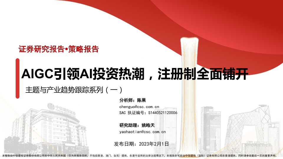 【中信建投证券】【20230201】主题与产业趋势跟踪系列(一):AIGC引领AI投资热潮,注册制全面铺开-32页