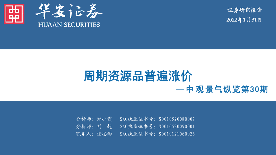 中观景气 华安证券 周期资源品 涨价分析 经济研究报告