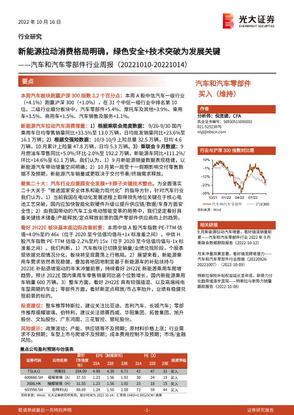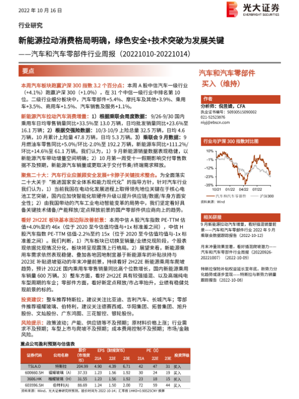 【光大证券】【20221016】汽车和汽车零部件行业周报:新能源拉动消费格局明确,绿色安全+技术突破为发展关键-23页