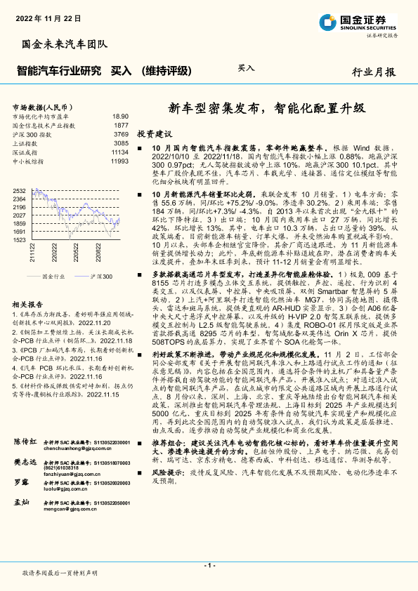 【国金证券】【20221122】智能汽车行业研究:新车型密集发布,智能化配置升级-24页