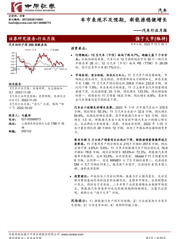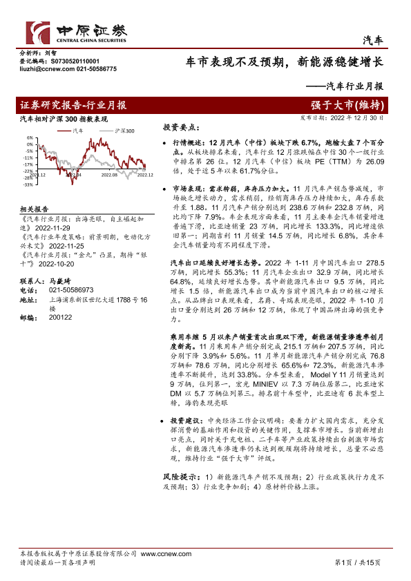 【中原证券】【20221230】车市表现不及预期,新能源稳健增长-15页