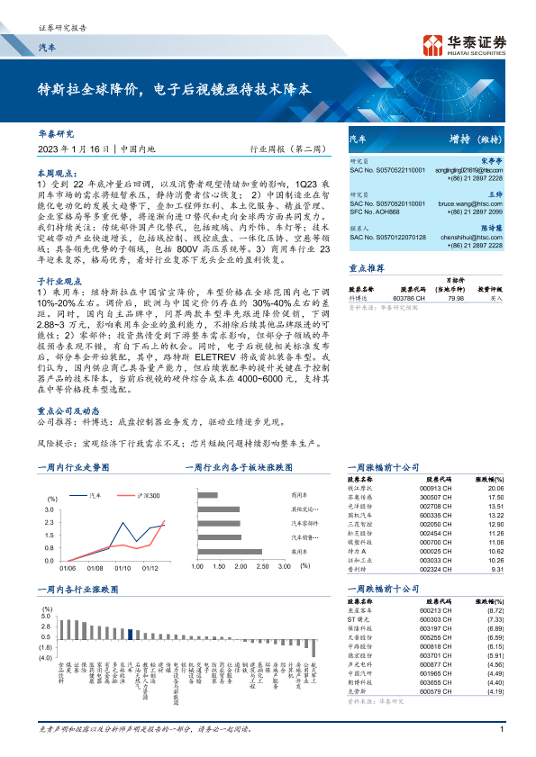 【华泰证券】【20230116】20230116-华泰证券-汽车行业周报(第二周):特斯拉全球降价,电子后视镜亟待技术降本-23页