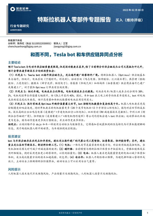 【国金证券】【20230208】20230208-国金证券-特斯拉机器人零部件专题报告:和而不同,Tesla bot和车供应链异同点分析-37页