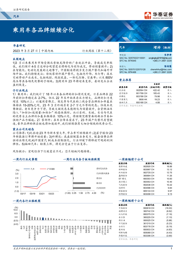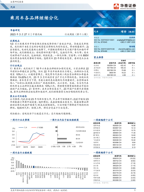 【华泰证券】【20230327】20230327-华泰证券-汽车行业周报(第十二周):乘用车各品牌继续分化-26页