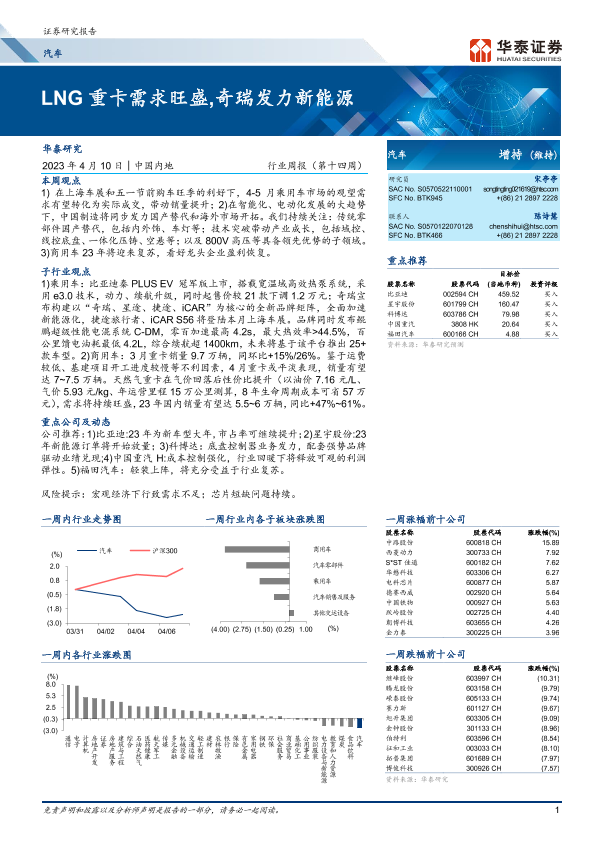 【华泰证券】【20230410】20230410-华泰证券-汽车行业周报(第十四周):LNG重卡需求旺盛,奇瑞发力新能源-24页