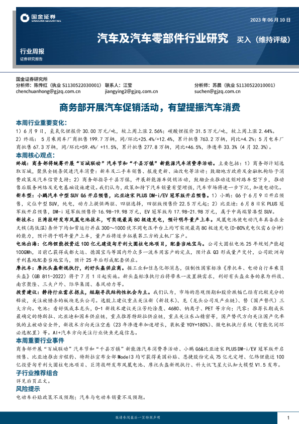 【国金证券】【20230610】汽车及汽车零部件行业研究:商务部开展汽车促销活动,有望提振汽车消费-14页