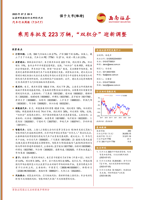 【西南证券】【20230709】汽车行业周报:乘用车批发223万辆,“双积分”迎新调整-18页
