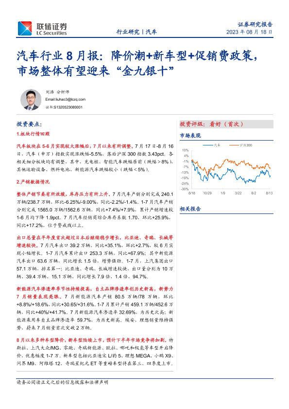【联储证券】【20230818】20230818-联储证券-汽车行业8月报:降价潮+新车型+促销费政策,市场整体有望迎来“金九银十”-27页