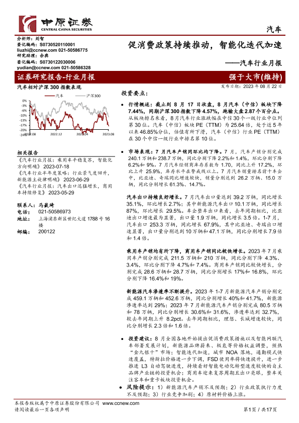 【中原证券】【20230822】20230822-中原证券-汽车行业月报:促消费政策持续推动,智能化迭代加速-17页