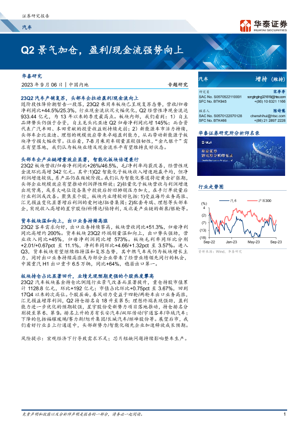 【华泰证券】【20230906】20230906-华泰证券-汽车行业专题研究:Q2景气加仓,盈利 现金流强势向上-17页
