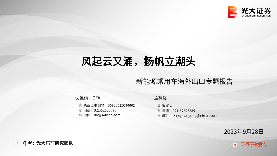 【光大证券】【20230928】风起云又涌,扬帆立潮头——新能源乘用车海外出口专题报告-49页