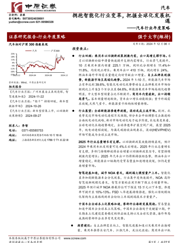 【中原证券】【20241206】20241206-中原证券-汽车行业年度策略:拥抱智能化行业变革,把握全球化发展机遇-27页