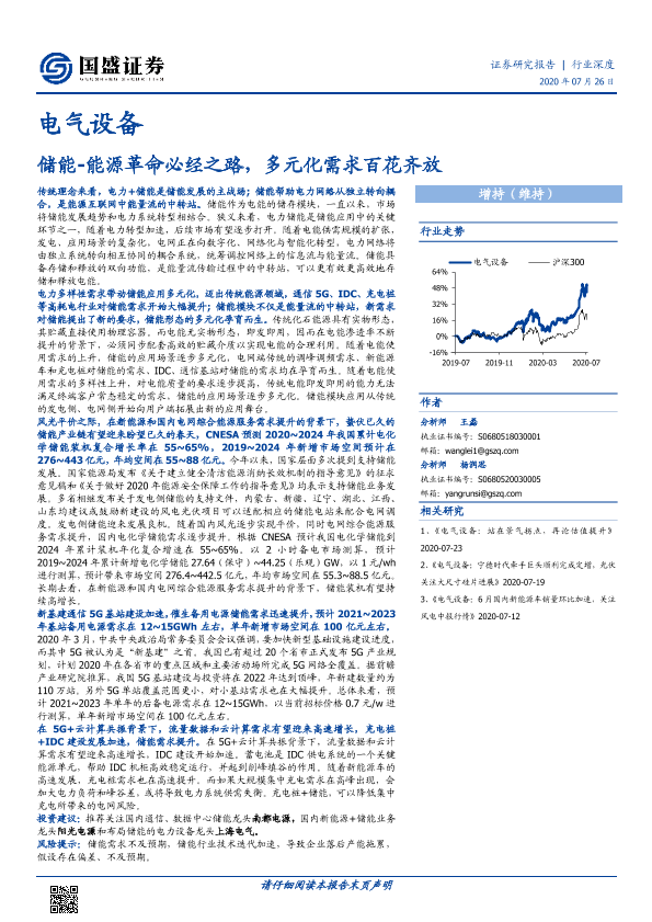 【国盛证券】【20200726】电气设备行业深度:储能-能源革命必经之路,多元化需求百花齐放-32页