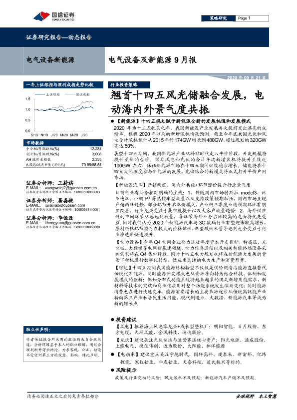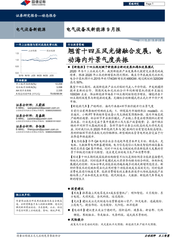 【国信证券】【20200921】电气设备及新能源9月报:翘首十四五风光储融合发展,电动海内外景气度共振-27页