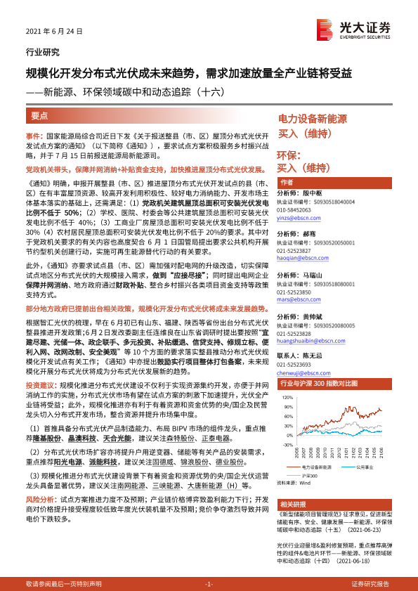 【光大证券】【20210624】新能源、环保领域碳中和动态追踪(十六):规模化开发分布式光伏成未来趋势,需求加速放量全产业链将受益-2页