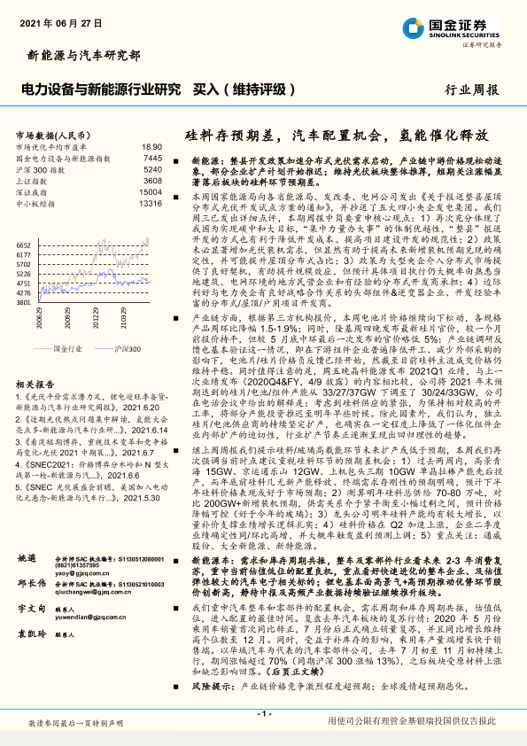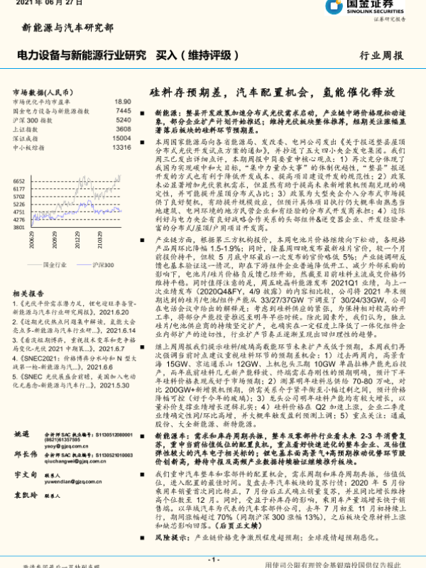 【国金证券】【20210627】电力设备与新能源行业研究周报:硅料存预期差,汽车配置机会,氢能催化释放-5页