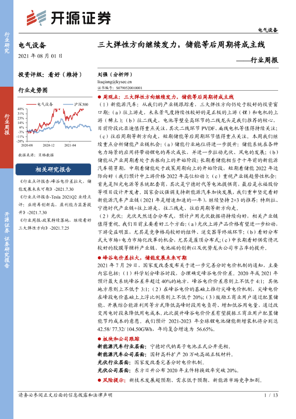 【开源证券】【20210801】电气设备行业周报:三大弹性方向继续发力,储能等后周期将成主线-13页