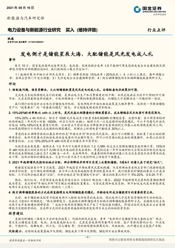 【国金证券】【20210810】发电侧才是储能星辰大海,大配储能是风光发电成人礼-3页
