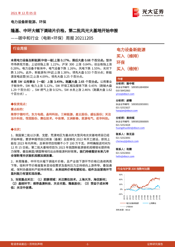 【光大证券】【20211205】碳中和行业(电新+环保)周报:隆基、中环大幅下调硅片价格,第二批风光大基地开始申报-27页