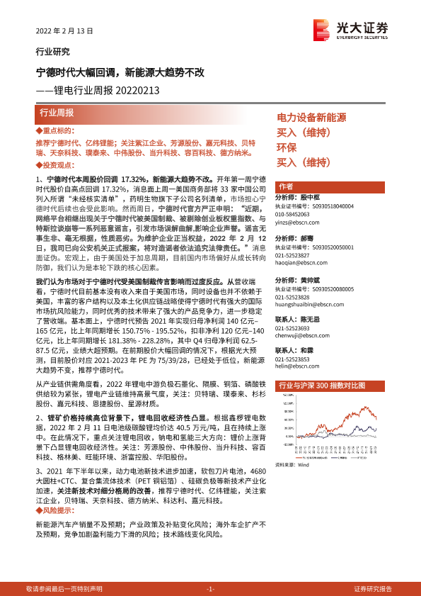 【光大证券】【20220213】20220213-光大证券-锂电行业周报:宁德时代大幅回调,新能源大趋势不改-9页